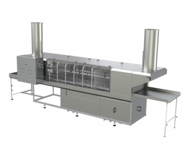 The Monorail chocolate mould and plaque washing machine is designed for medium throughput applications where space is at a premium or one person operation is desirable. The machine contains all the processing sequences of equipment twice this length (including pre-wash, main wash, recirculating rinse, fresh rinse, blow off and heated drying), but contained within a compact floor space.